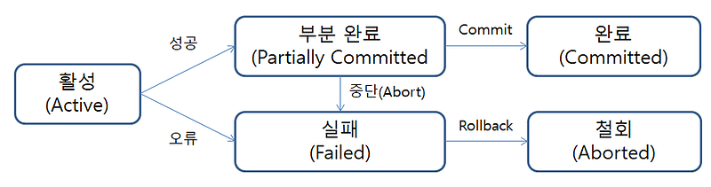 ③ 완료상태(Committed)는 트랜잭션이 성공적으로 완료된 후 가지는 상태이다