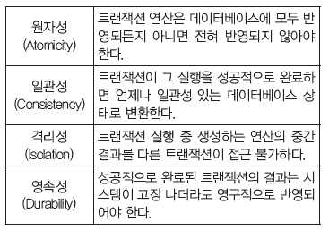 시스템이 가지고 있는 고정요소는 트랜잭션 수행 전과 트랜잭션 수행 완료 후에 같아야 한다.