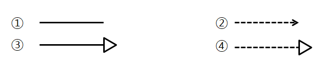48. 다음 중 UML의 관계의 유형 중 "일반화 관계(Generalization)"를 표현하는 기호로 올바른 것은?